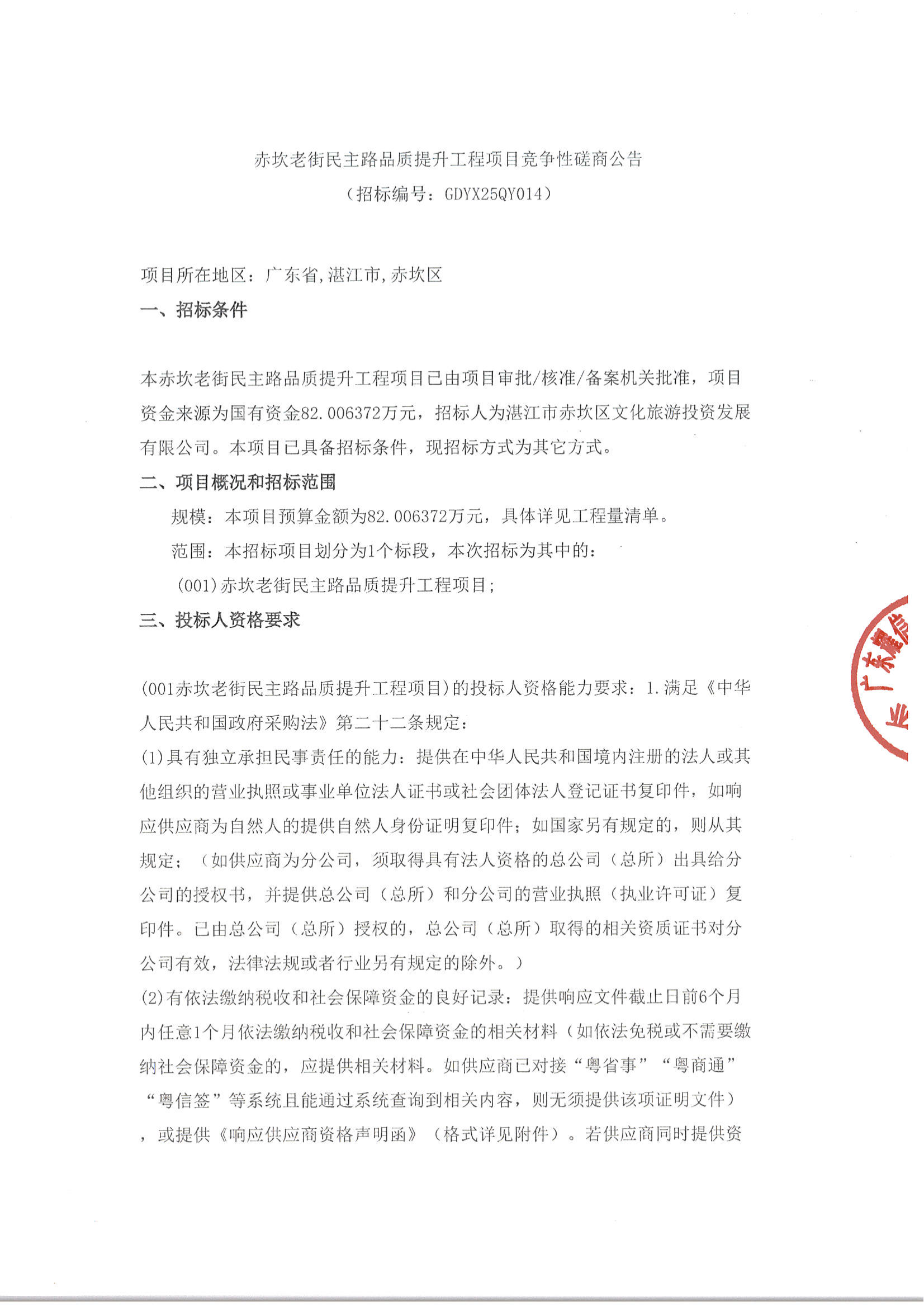 赤坎老街民主路品质提升工程项目竞争性磋商公告